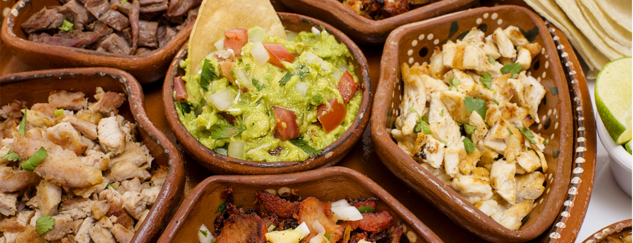 Arrachera steak, chicken fajitas, sausage, red chili marinated pork and quesadillas. Served with grilled onions, peppers, charro beans, pico de gallo, guacamole and nopales